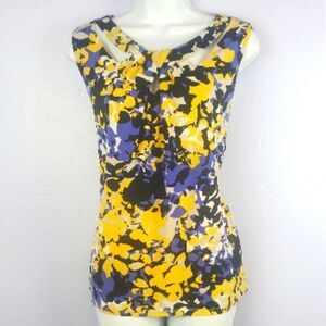 Sleeveless bold print top with cut out detail on chest area. In great condition.