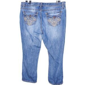 NINE WEST Embroidered Rhinestone Capri Jeans EUC