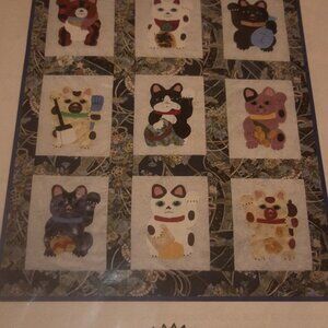 NIP 2002 Su-Sun Designs "Maneki Neko" Quilt Pattern Cats 39"X53"