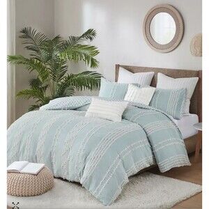 NIP $255 INK+IVY Duvet Cover Set 3pc FULL/QUEEN Kara Cotton Jacquard Aqua Blue Boho