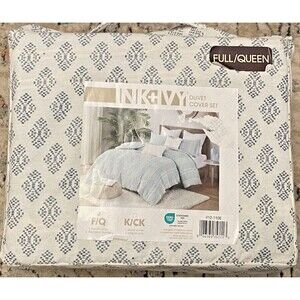 NIP $255 INK+IVY Duvet Cover Set 3pc FULL/QUEEN Kara Cotton Jacquard Blue Boho