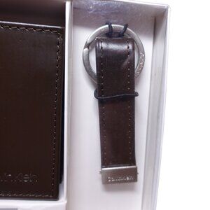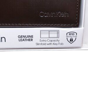 NIP Calvin Klein RFID Slimfold Extra Capacity Wallet With Key Fob Brown Leather