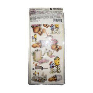 • Features: Flower Pot, Bird Houses, Rabbit in a wheelbarrow trying to catch a butterfly, Watering Cans, Gloves