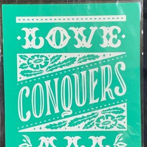 Brand New, In package, 8.5 x 11, Love Conquers All