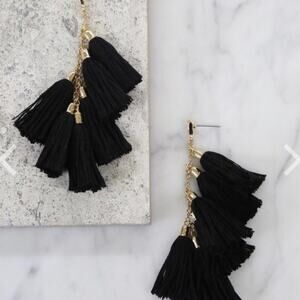 NIP Ethika Los Angeles CA Black Gold Hardware 18K Plated Tassel Earrings