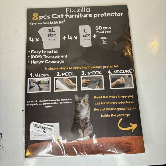 NIP Fixzilla 8 Pcs Cat Furniture Protector Clear XL Large Stick On New Kitten