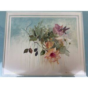 NIP Gary Jenkins Lithograph Print Oil "Hibiscus" 22/250 Floral Hummingbird Drip