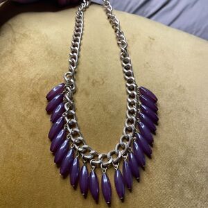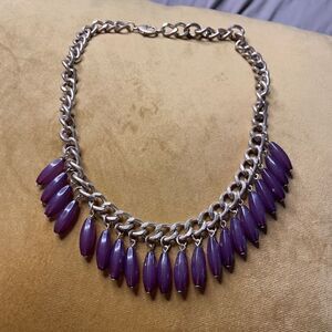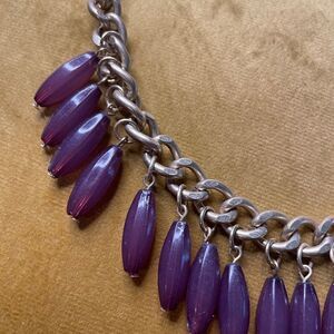 NIP Gold Tone Chunky Link Necklace w/ Purple Beading - OS