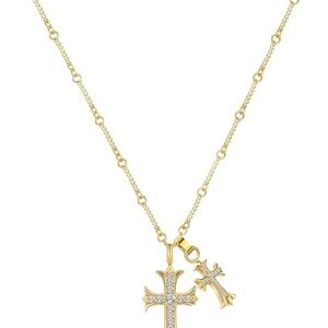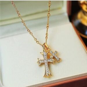 Cross Necklace Double Cross Pendant CZ, Cubic Zirconia Cross Necklace Jewelry Birthday Gifts
