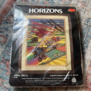 NIP Horizons Monarch Aviation Aerial Circus Airplanes Long Stitch Needlework Craft new old stock, 1982 designs