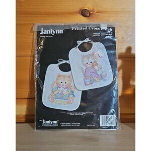 NIP Janlynn Cuddly Kittens Printed Cross Stitch Kit Set 2 Bibs