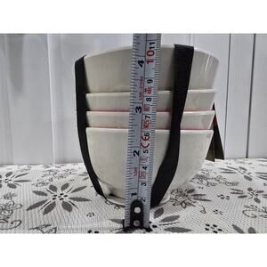 This pretty set includes four melamine dessert bowls in coordinating warm tones with a glossy interior and subtle floral detailing on the outside. They’re brand new, still tied together with the original ribbon and tags intact. Perfect for ice cream, snacks, fruit, or gifting.