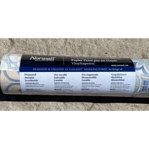 NIP NORWALL Prepasted WALLPAPER 56 SqFt MOROCCAN TILES KE29950 Blue White Vinyl