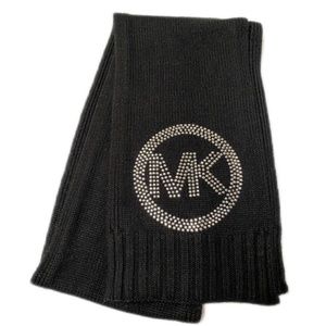 NIP / NWT Michael Kors MK Logo Silver Studded Black Muffler Scarf 536097