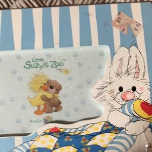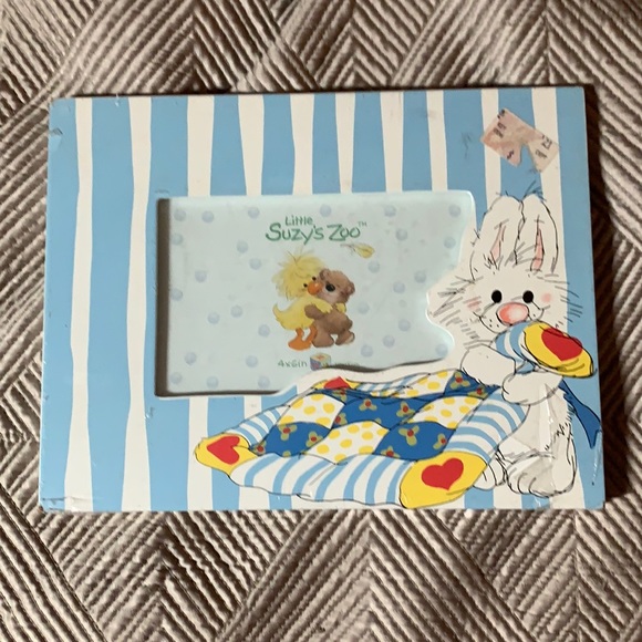 Blue and white striped frame with white bunny and blanket. 9.5x 7.5. 4x 6 opening