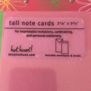 NIP Pink & Green Tall Note Cards w/Envelopes (32) these are great for most anything. Three packages are still in box and one package is not. 7 cards of opened box is missing hardware but you can use ribbon or twine and give a frilly or rustic vibe. Great for many occasions. SOLD AS IS