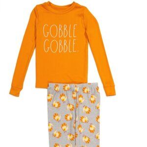 NIP RAE DUNN CHILD 4T Gobble Gobble Tight Fit FALL THANKSGIVING Pajama Set