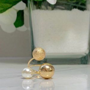 NIP Ring Goldtone Pearl & Ball Adjustable
