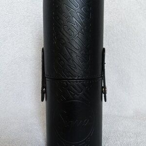 Black 2-piece storage container provides 360° protection for brushes and turns into 2 separate brush holders for vanity or tabletop use.