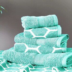 NIP Spirit Linen Honeycomb Design 6 Piece Bathroom Towel Set In Aqua White