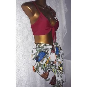NIP Maroon Boutique Bikini with Peppermint Bay Hip Scarf Pashmina Shawl (OS)