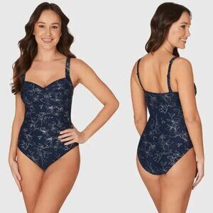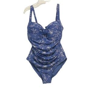 Nip Tuck Swim Women's One-Piece Swimsuit Built-In Bra Navy Blue 8 Silver Floral Pre-Owned In Good Condition, with no rips or stains.