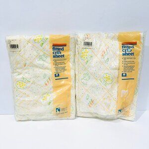 NIP Vintage Carters Cotton Yellow White Baby Animals Fitted Crib Sheets - set of 2