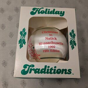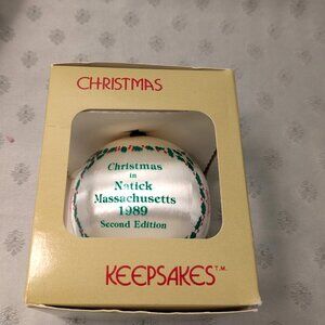 The second ornament reads “Christmas in Natick Massachusetts 1989 Second Edition” and “The Henry Wilson Shop West Natick, Massachusetts”.