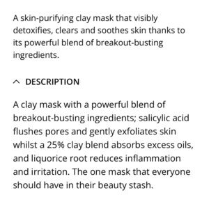 A skin-purifying clay mask that visibly detoxifies, clears and soothes skin thanks to its powerful blend of breakout-busting ingredients