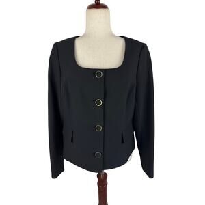 NIPON BOUTIQUE SQUARE NECK BUTTON FRONT BLAZER IN BLACK NWT WOMEN'S SIZE 8