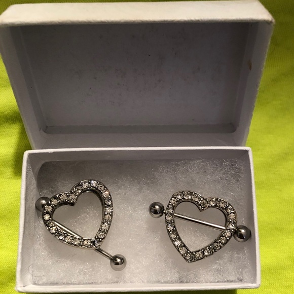 Silver Rhinestone Nipple Rings .