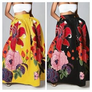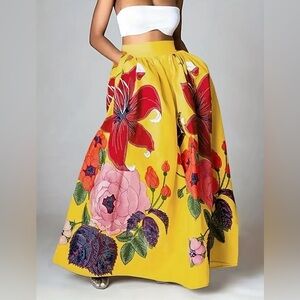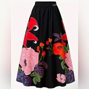 NIP-Plus Size Floral Print Maxi A-Line Skirt