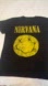 NIRVANA Black Tee with Iconic Yellow Smiley size large short sleeve EUC