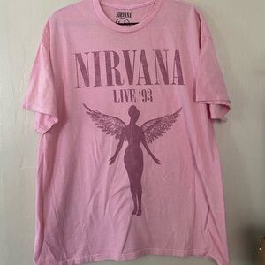 Color: Distressed pink with a pink Nirvana logo a pink Angel graphic in the center