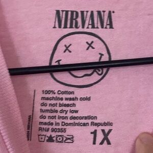 NIRVANA Distressed Pink Angel Graphic T Shirt Grunge Rocker Tee Plus Size 1X NEW