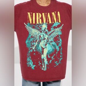 NIRVANA Fashion Nova NWOT Maroon and Teal Graphic Band Tee Shirt