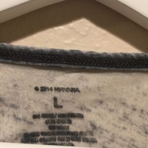 NIRVANA Happy face logo yellow Burn out graphic Band Tee Shirt Gray Lrg