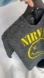 Bold NIRVANA tee with iconic smiley face. Charcoal base with vibrant yellow print. Perfect for fans.