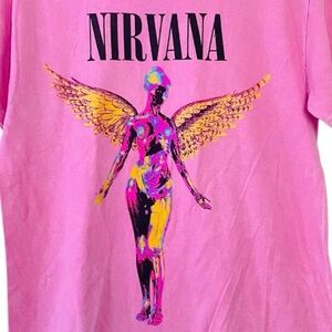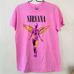 NIRVANA Pink In Utero Live 93 Concert T Shirt Angel Graphic Tee Women’s Medium