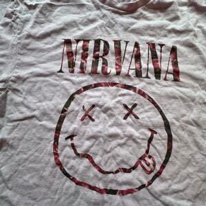NIRVANA x Womens Light Pale Pink Band Graphic Tee 90s Y2K Grunge Emo l Size XL l Measurements approximate and on flat surface: P2P: 21", Length: 26.5" .