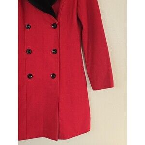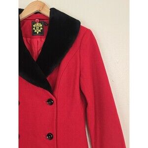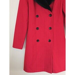 NISHE Red Double Breasted Wool Coat Womens Size 4 Black Faux Fur Trim Collar