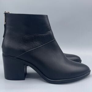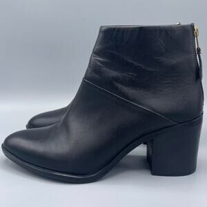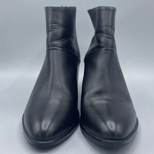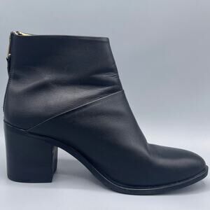 NISOLO Ankle Boots Size 9.5 Minimalist Black Leather Almond Toe Block Heels Zip
