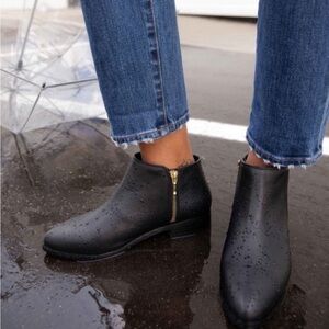 Elegant black leather boots featuring a chic gold zipper. Ideal for versatile styling.