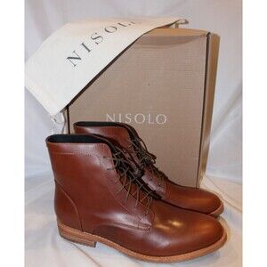 NISOLO MEN'S ALL WEATHER LACE UP LEATHER BOOTS BRANDY SZ 9.5 $260 NIB