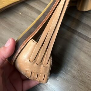 Nisolo huaraches sandals in nude color. Gently pre owned condition with some minor wear/staining on bottom of shoes and scuffing around heel on outside as seen in pics. Size 8.5. More item descriptions in last few pics. Please look at all pics and comment below with any questions