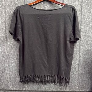 Stylish black crop top featuring a bold graphic design. Perfect for casual outings.