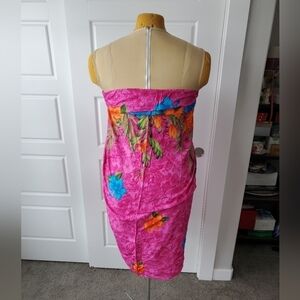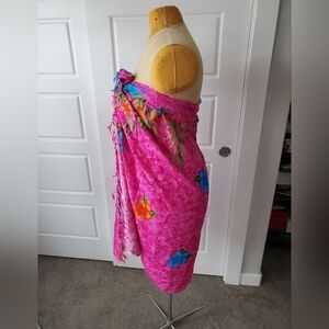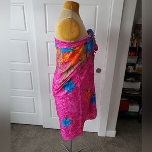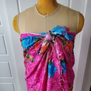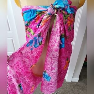 NITAI RAYON LARGE WRAP SARONG BEACH SWIM COVERUP PINK ORANGE FLORAL WOMEN OS