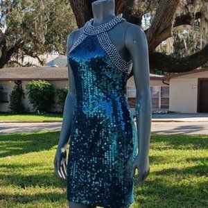 VTG 80s Niteline Blue Evening Sequin Dress Sz 6