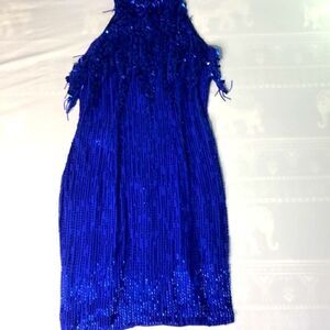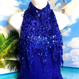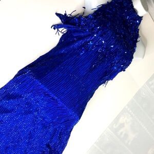 Royal Blue Sequin Sleeveless Party Evening Dress