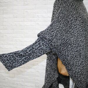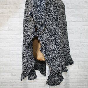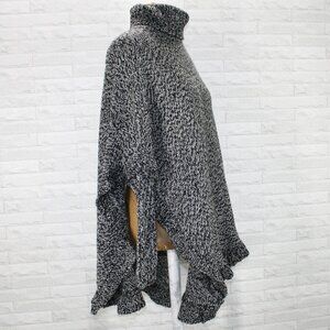 NITROGEN Sweater Turtleneck Poncho Long Sleeve Ruffled Knit Grey Oversized XS
